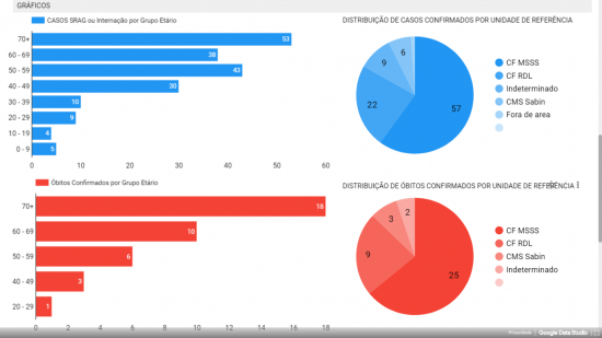 * Internações/SRAG: Paciente com síndrome gripal ainda sem etiologia definida + critério de gravidade como falta de ar ou baixa saturação de oxigenio, com necessidade de atendimento em UPA ou hospital, encaminhado de uma das três clínicas da família deste painel.